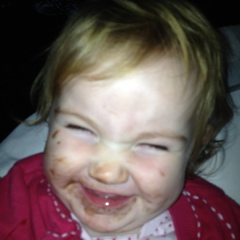 This is a photograph of my little girl taken after I caught her getting stuck into some chocolate she had discovered.